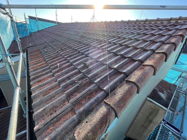数年前に別の業者で屋根塗装を行ったそうですが、現地調査したところ色に変色が見られました。