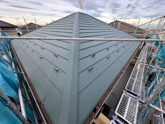 既存の屋根材の上に新しい屋根材を被せる屋根カバー工法は、工期が短く費用を抑えられるのがメリットです。