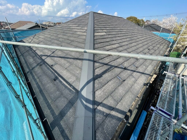 現地調査の際に塗装メンテナンスの難しいノンアスベストの屋根材が用いられていることがわかったため、屋根カバー工法を提案しました。