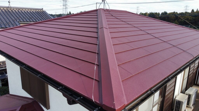 ・使用した屋根材:福泉工業 MFシルキーG2 ワインレッド