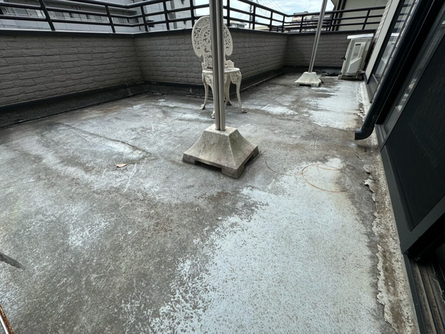築30年の建物で雨漏りが発生し、ベランダの防水工事を行った事例です。