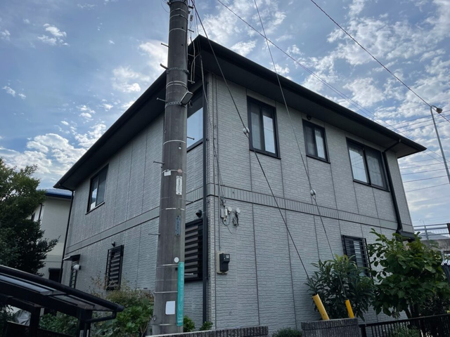 ・施工内容: 外壁塗装/屋根塗装/軒天塗装/雨樋塗装/破風板・鼻隠し塗装/シャッターBOX塗装/水切り塗装/鉄部塗装/棟板金交換