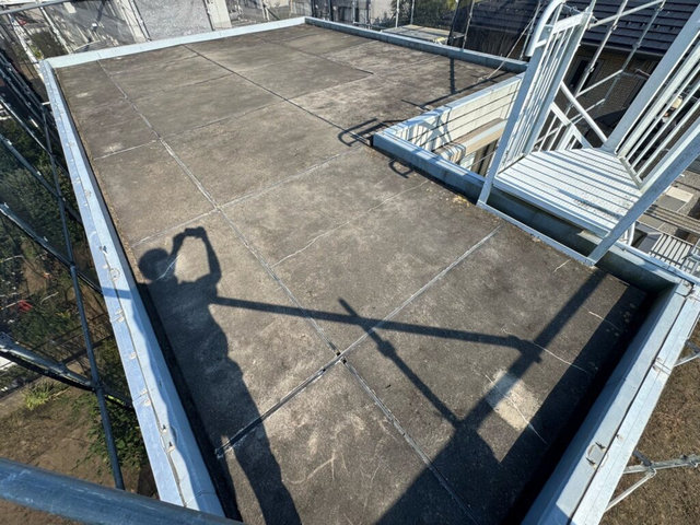 屋上全体に汚れや剥がれ、ひび割れが見られたためお客様から依頼がありました。