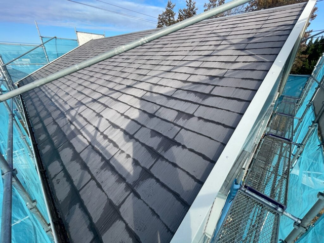 下塗りの回数を1回増やすことで塗料が屋根材にしっかりと密着し、剥がれにくく耐久性の高い仕上がりにしています。