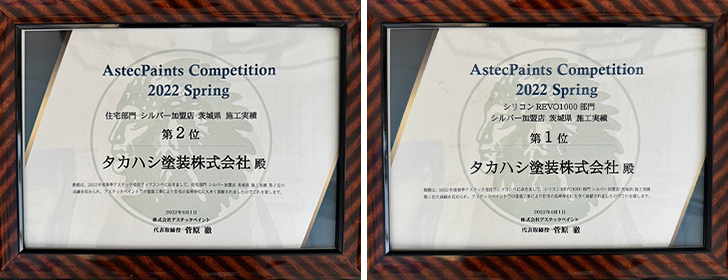 6月 アステックペイント 住宅部門 シルバー加盟店 茨城県 施工実績 第2位 6月 アステックペイント シリコン REVO1000部門 シルバー加盟店 茨城県 施工実績 第1位 |