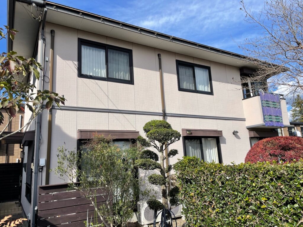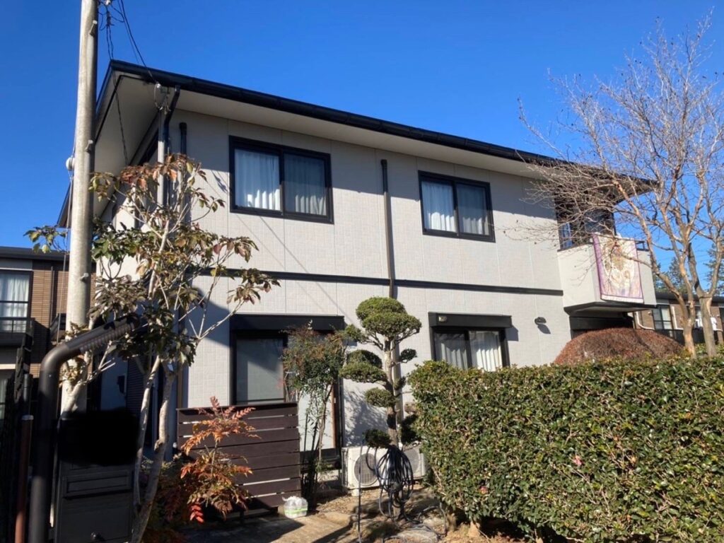 今回は外壁塗装、屋根塗装、付帯部塗装、コーキング工事、一部雨樋補修工事を行いました。