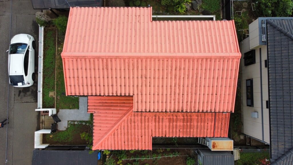 築40年のお家になります。元々の瓦が塗装のメンテナンスが出来ない屋根であり、下地の劣化(防水シートと野地板)が確認できた為、今回は屋根葺き替え工事をご提案させて頂き、屋根葺き替え工事を行いました。