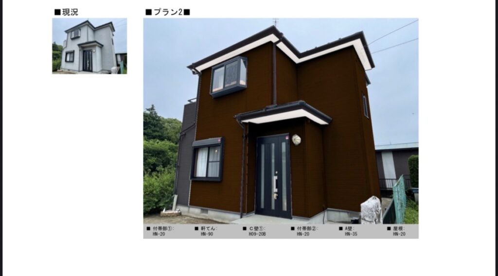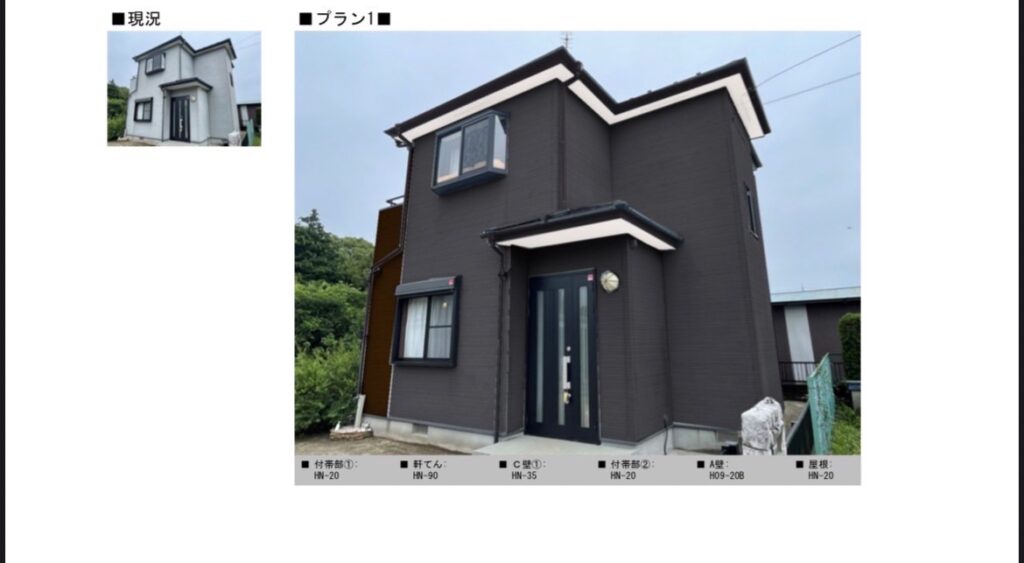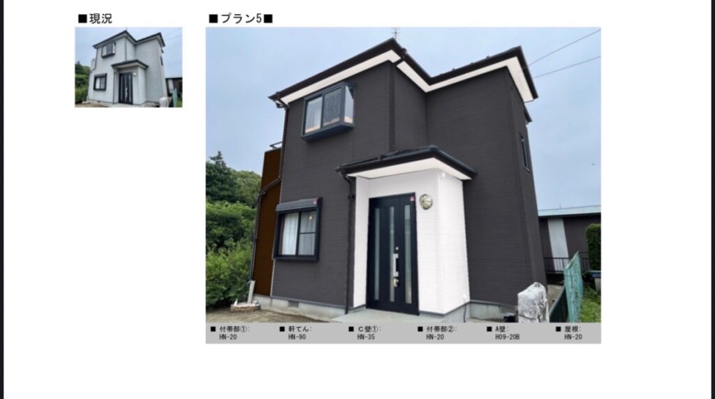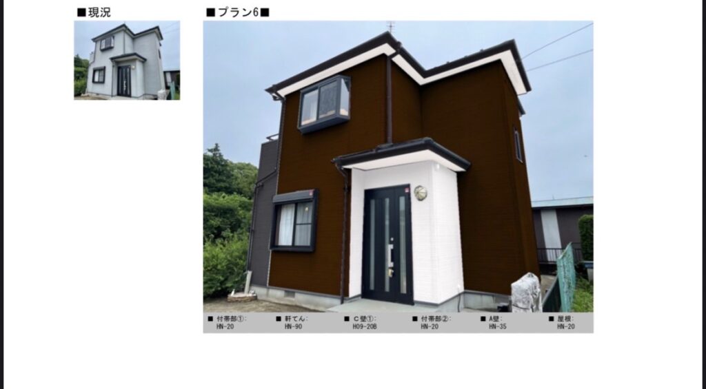 | 施工内容 | 外壁塗装/屋根塗装/軒天塗装/雨樋塗装/破風板・鼻隠し塗装/シャッターBOX塗装/水切り塗装/鉄部塗装/棟板金交換 |