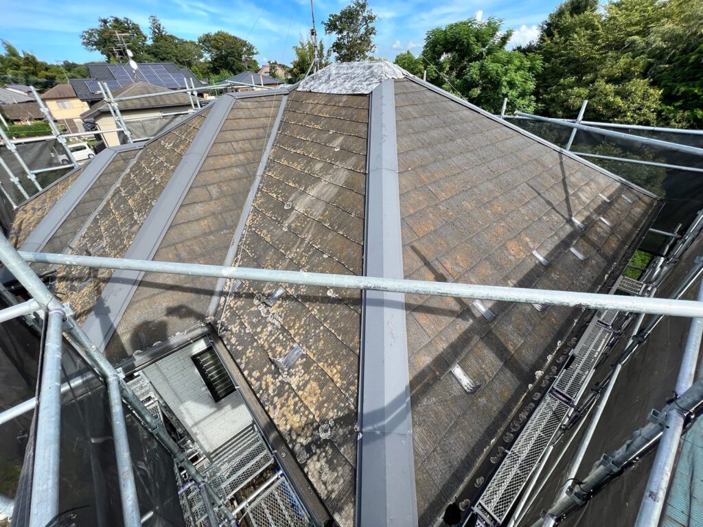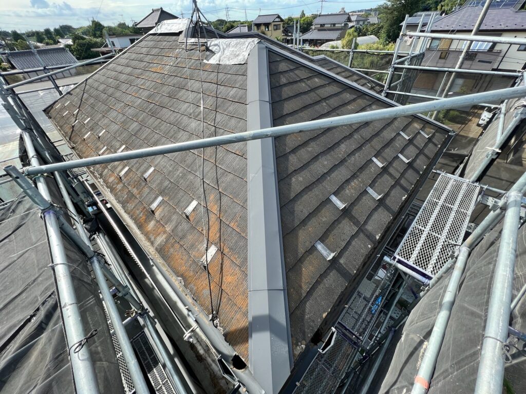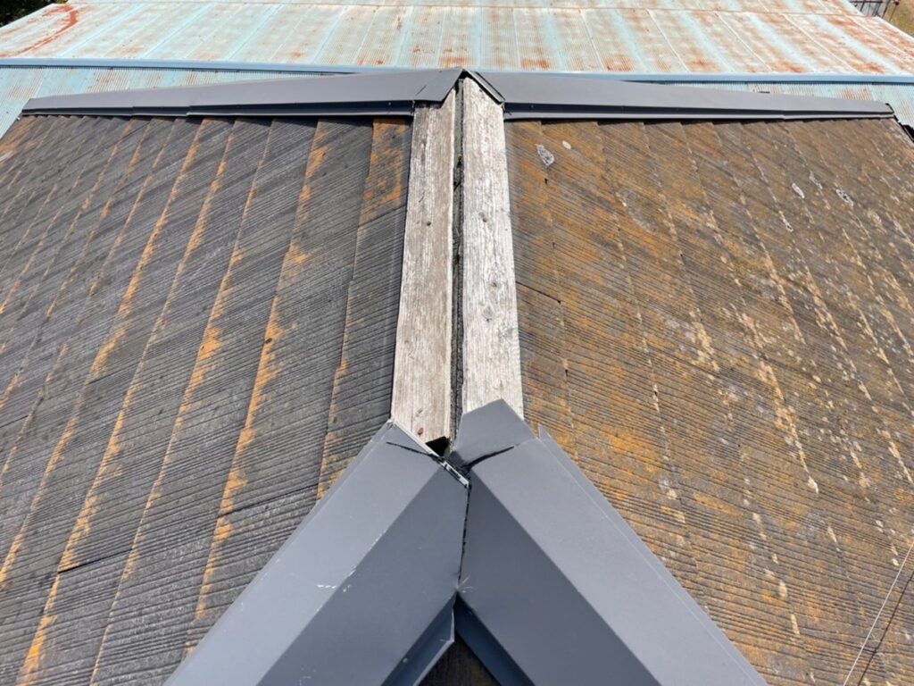 屋根の棟板金の下地が弱まり一部棟板金がなくなってしまっていた為、今回は棟板金の交換工事も行いました。