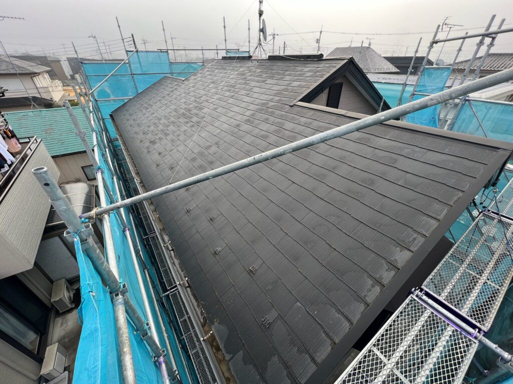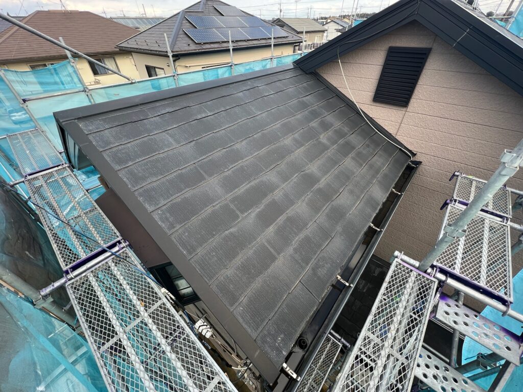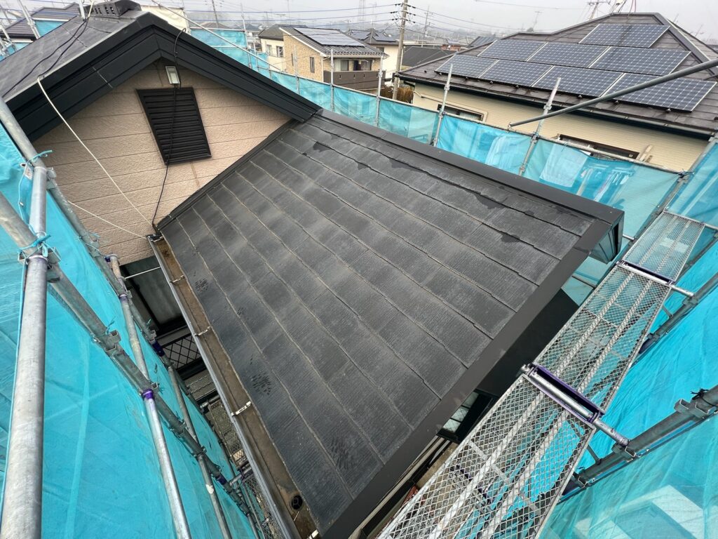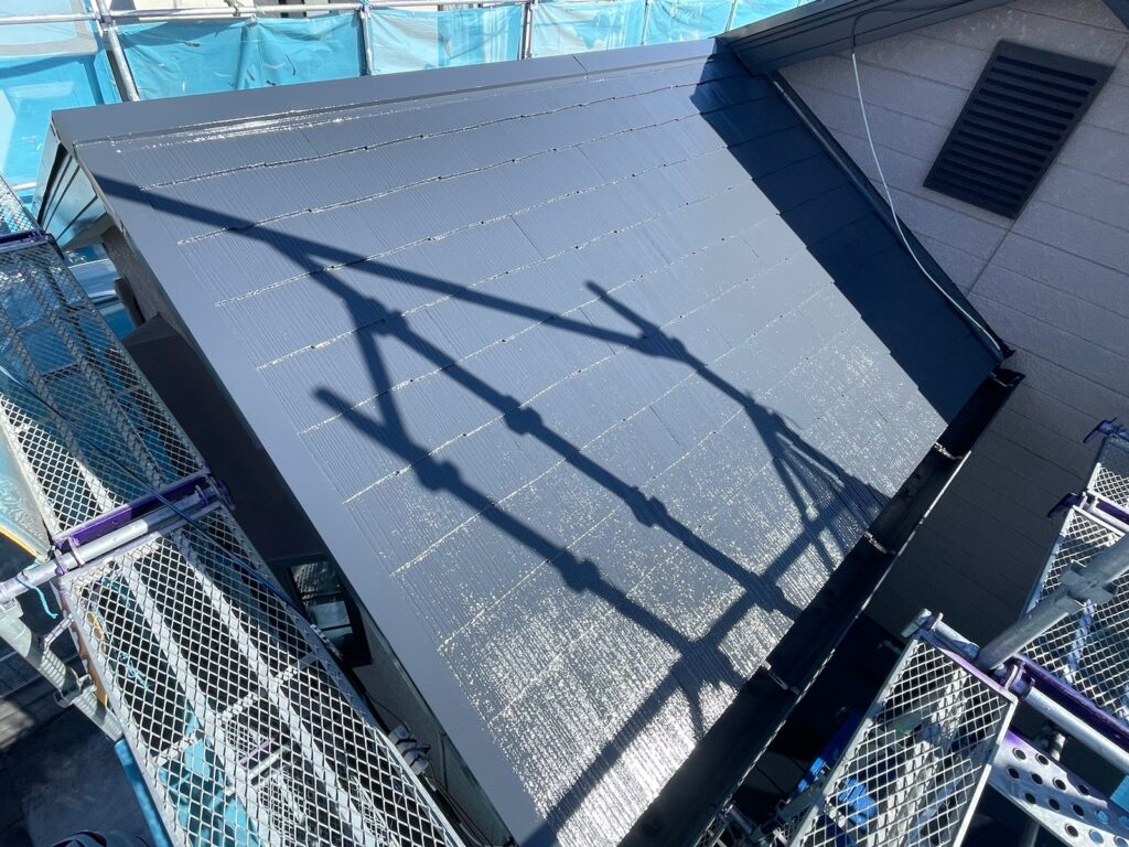 | 使用商材・建材 | 屋根(3回塗り) メーカー:ロックペイント 塗料:ハイパー夢ロックルーフ(ラジカル塗料) 色:アイアングレー |