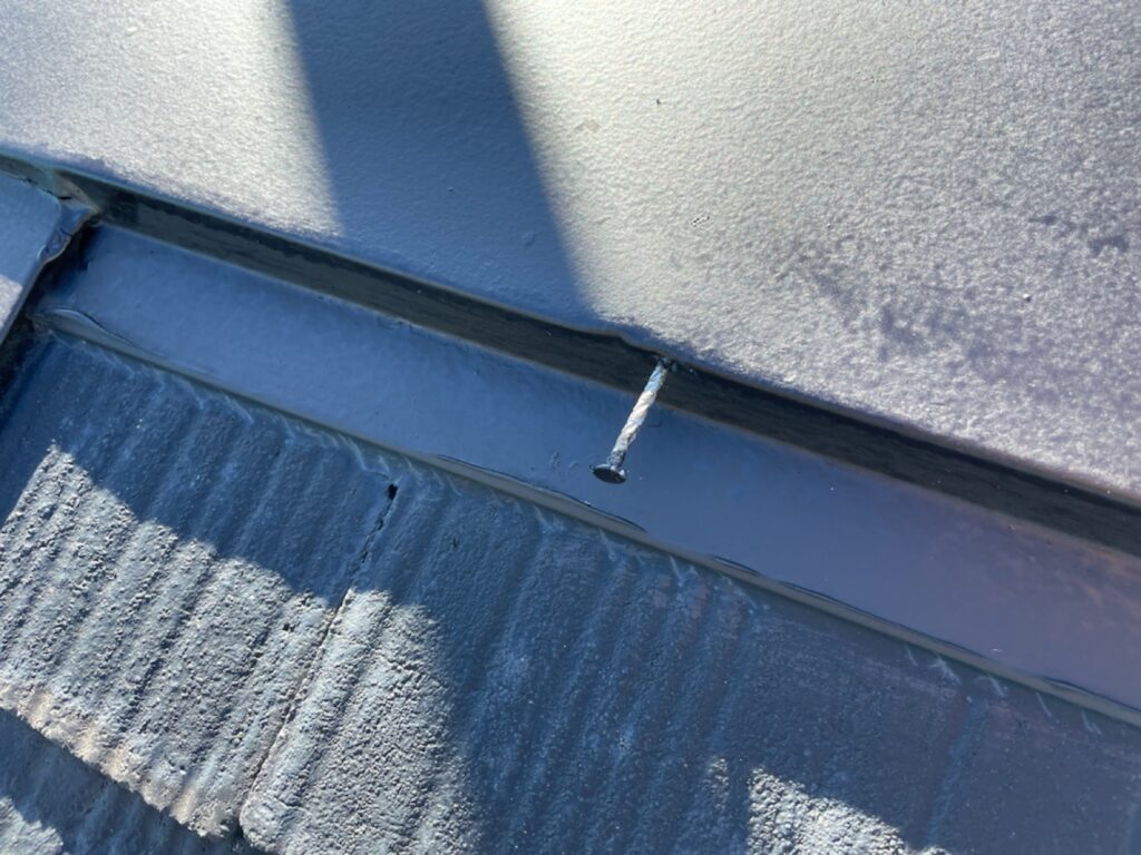 屋根塗装を行う前に、棟板金の釘の補強も行いました。