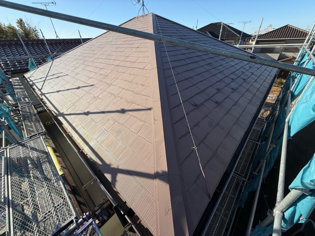 茨城県阿見町で築30年のコロニアル屋根の屋根カバー工法が完工致しました。