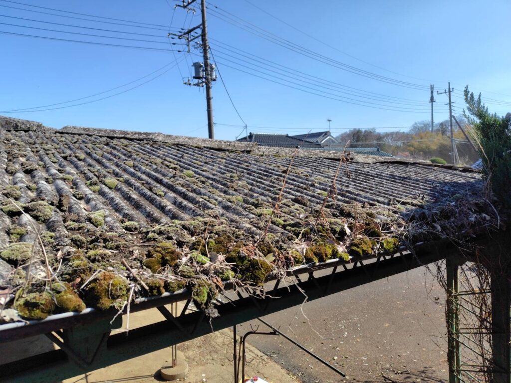 茨城県古河町で築50年のガレージ屋根の葺き替え工事が完工致しました。(雨漏れ修理)
