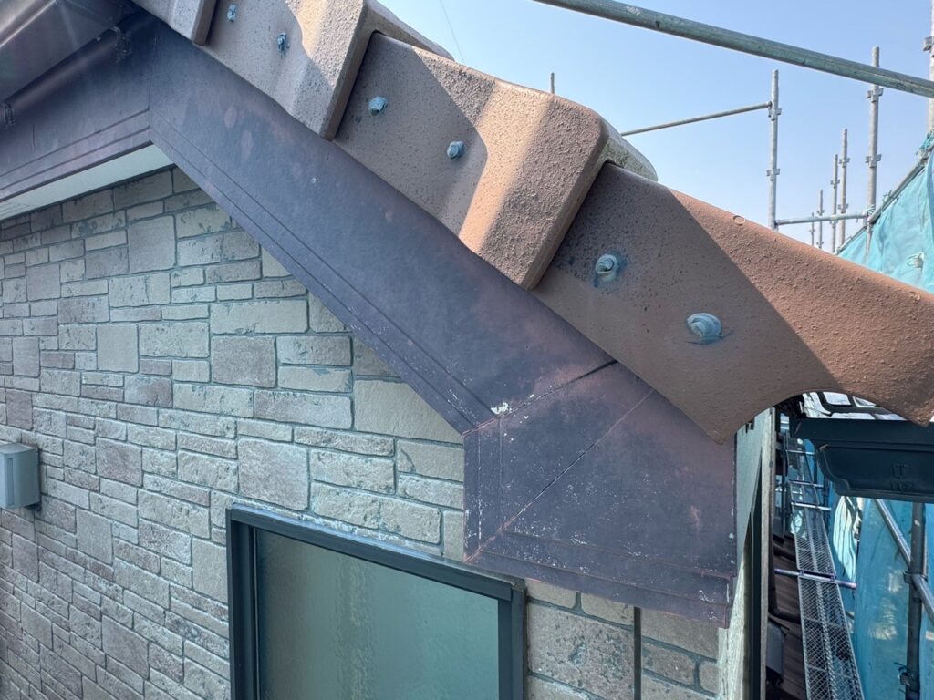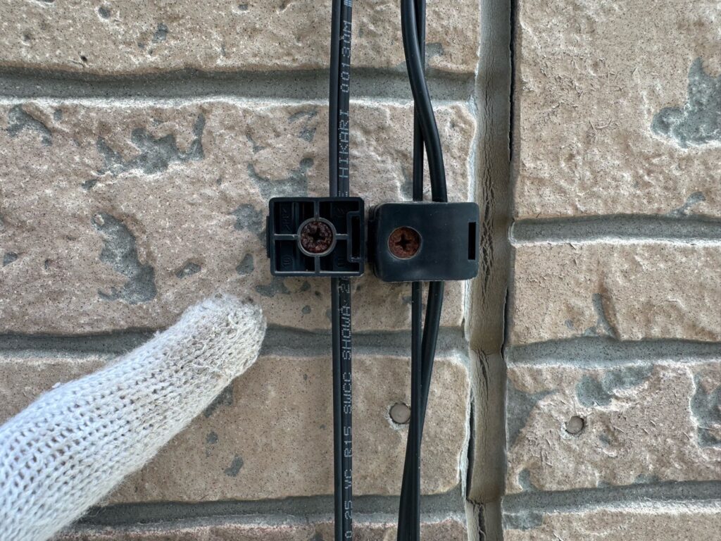 | 使用商材・建材 | ●外壁塗装(3回塗り)※傷んでいる部分のみ4回塗り メーカー:KFケミカル 塗料:セミフロンスーパーアクアⅡ(艶あり) 全体色:目地色…19-20B(ニットコウ)・表面色…22-30B(ニットコウ) ●付帯部塗装 メーカー:セミフロンマイルドⅡ(4Fフッ素塗料) 色:破風チョコ ●コーキング メーカー:オート化学工業 材料:オートンイクシード |