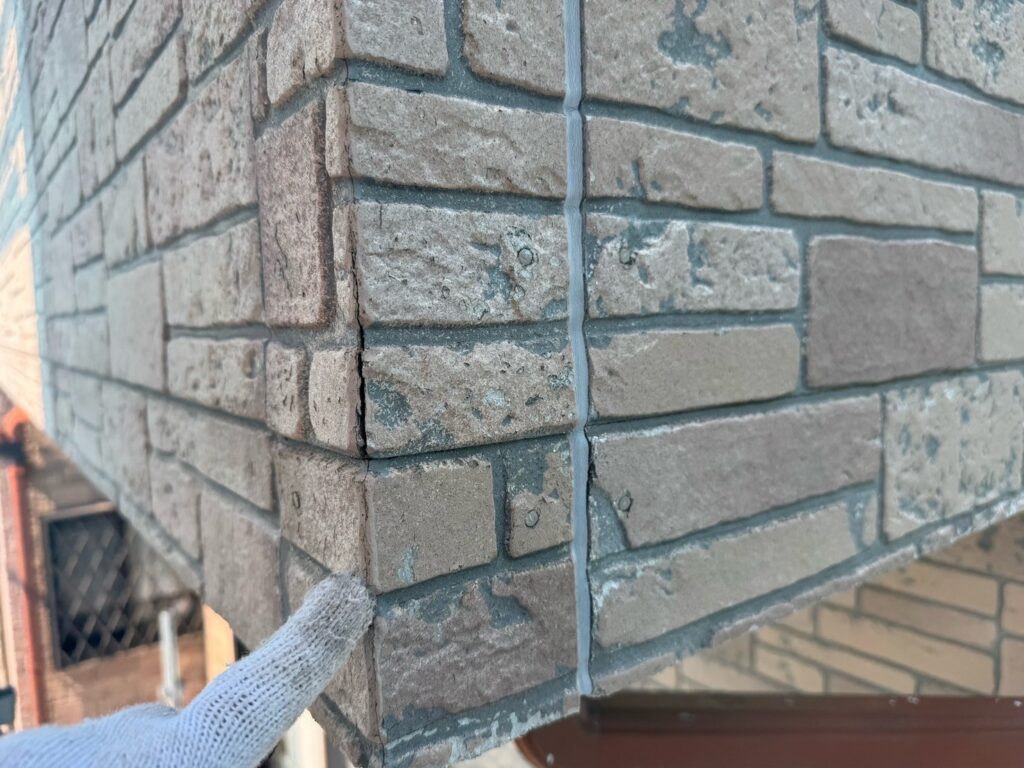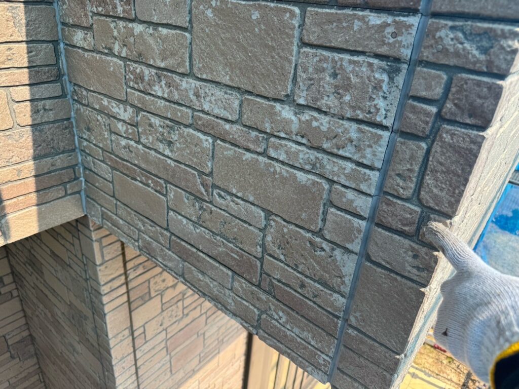 【ご提案】:お問い合わせありがとうございます。既存の外壁はタイル柄の意匠性サイディングでした。現地調査の際に外壁に剝がれが多くあり、この状態ではクリヤー塗装はおすすめ出来ない事をお伝えしました。単色塗りではなく、『グラデーション工法』という、デザイン塗装もできることをお伝えさせていただき、今回はグラデーション工法でのご提案をさせていただきました。