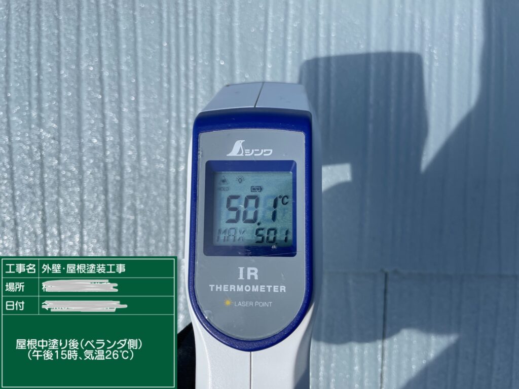 ↑塗装後、屋根の温度