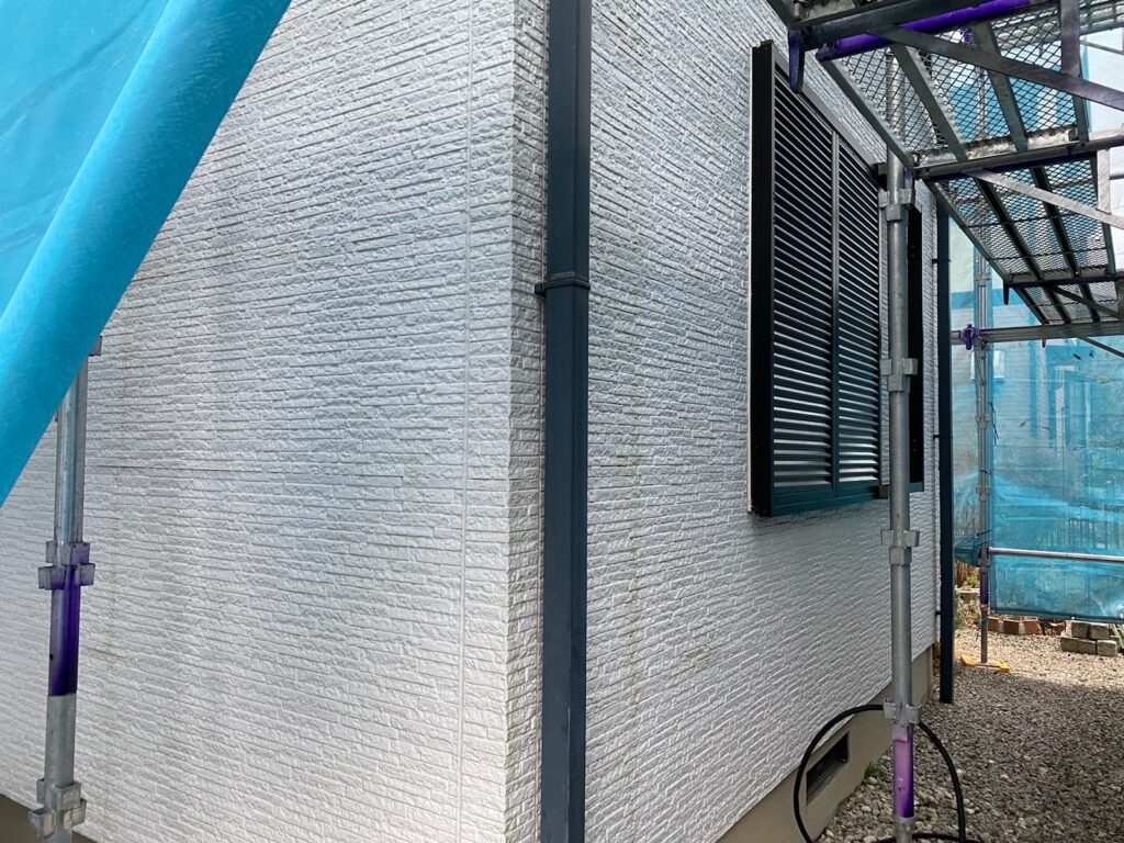 白色は汚れが目立ちやすいので、汚れがつきにくい「超低汚染塗料」を使用しました。