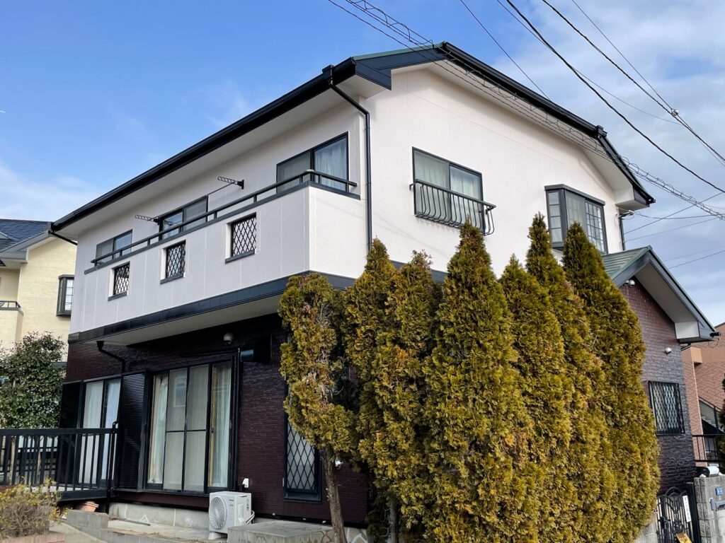 今回は外壁塗装、屋根塗装、付帯部塗装、コーキング工事を行いました。