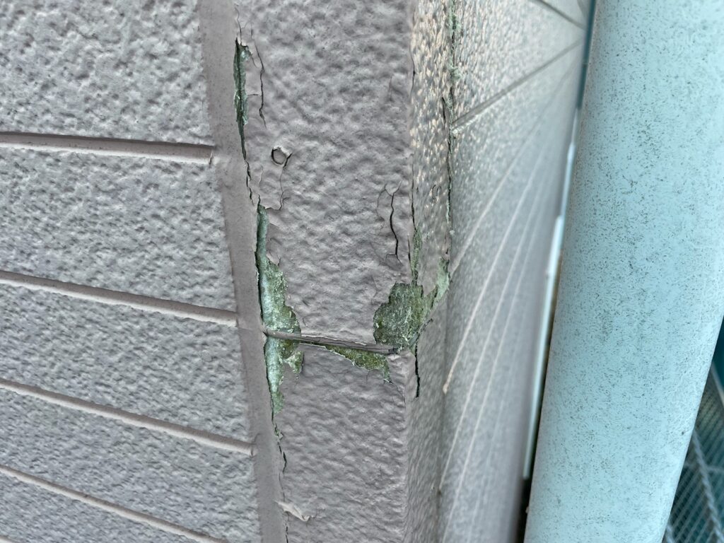 築25年程で前回の塗装から15年程が経過していいました。外壁は剝がれやひび割れなどが確認できました。